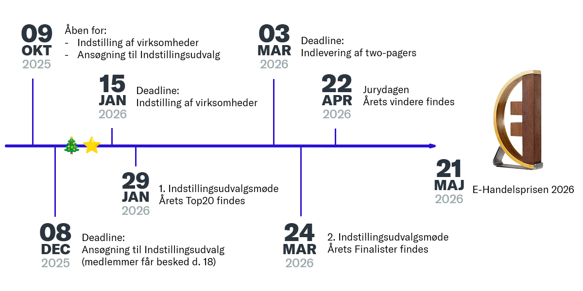 - Virksomheder indstilles til E-handelsprisen i en eller flere af de 10 kategorier (ekskl. Guldprisen)