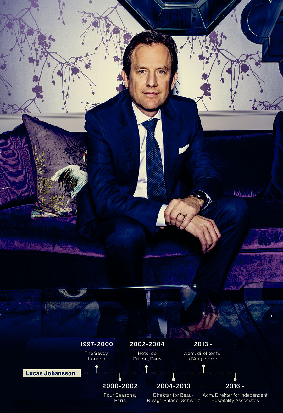 Lucas Johansson er adm. direktør for d’Angleterre, der er hotel i kategorien fem stjerner superior. Det har han været siden 2013, hvor hotellet slog dørene op efter danmarkshistoriens største hotelrenovering, der havde holdt hotellet lukket i to år.