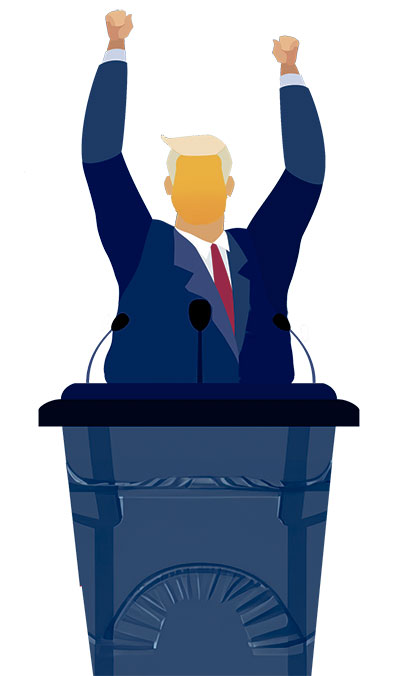 Dengang havde man næsten indtryk af, at hans sejr kom bag på ham selv lige så meget, som det overraskede meningsmålingsinstitutterne. Trumps administration var præget af mange udskiftninger og løfter, som han ikke lykkedes med at gennemføre. Et godt eksempel er sundhedsreformen – også kendt som Obamacare – som Trump ville afskaffe. Det blev aldrig til noget. Han fik heller ikke reduceret landets gigantiske gæld eller lavet de store investeringer i infrastruktur, som han talte meget om. Grænsemuren blev heller ikke til mange miles. Til gengæld startede han lidt af en handelskrig med Kina og fik også vedtaget betydelige skattelettelser.