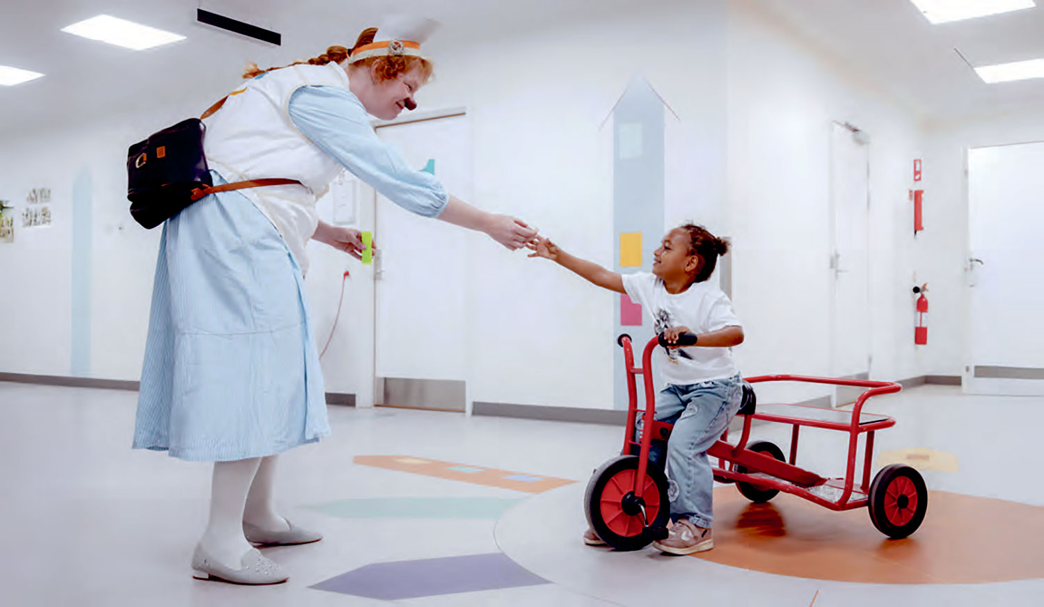 Sæbebobler, guitarspil, sang og trylleri. Det er bare et udpluk af det, Otto og Diamanda hiver op af hatten, når de interagerer med børnene. Hospitalsklovnene kender ikke børnenes sygdomme, inden de møder dem, og mens de er sammen med dem, og det er helt bevidst. For det vigtigste for klovnene er at fornemme rummet og møde børnene lige præcis dér, hvor de har brug for at blive mødt.
