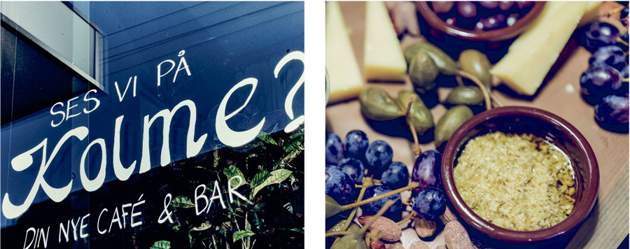 Kolmes drikkevarekort er lige til at gå ombord i – uanset om man er i det kolde, varme, søde, bitre eller brusende hjørne. For de spisende er menukortet ganske enkelt at navigere i. Kolme serverer tapas, der skal bestilles på forhånd. Det er om aftenen vel at mærke, for i løbet af dagen er der både morgenmad og søde sager.