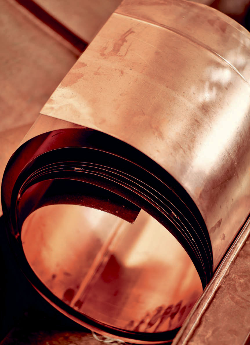 Kobberet til det nye tag, som bliver lagt i skinnende ruller og bearbejdet efter 100 år gamle metoder, er genbrugskobber fra Finland. 40 ton i alt. Tidligere gjorde heftig luftforurening kobbertaget grønt efter 10-15 år, mens det nu kommer til at tage 50-70 år, før taget får sin kendte grønne farve igen. Det nye kobber er 0,75 mm tykt, der er den maksimale tykkelse, der kan håndteres med håndværktøj. Kobberet leveres i ruller á 100 kg og stammer fra to kedler med hver 20 tons kobber.