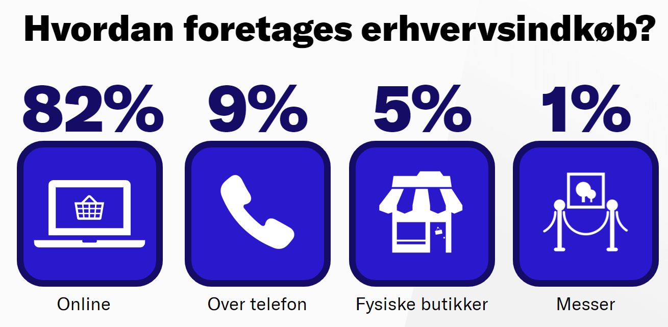 98% anvender digitale indkøb, mere end 7 ud af 10 kroner på indkøbernes budget bruges online og knap hver tredje indkøber handler udelukkende online.