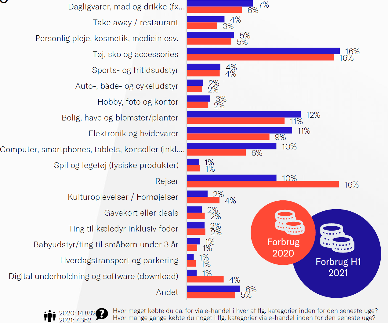 Væksten i forbruget bliver ikke mindre imponerende af, at rejsebranchen, som traditionelt er den suverænt største kategori målt på forbrug, stadig er ramt, uddyber e-handelsdirektøren: