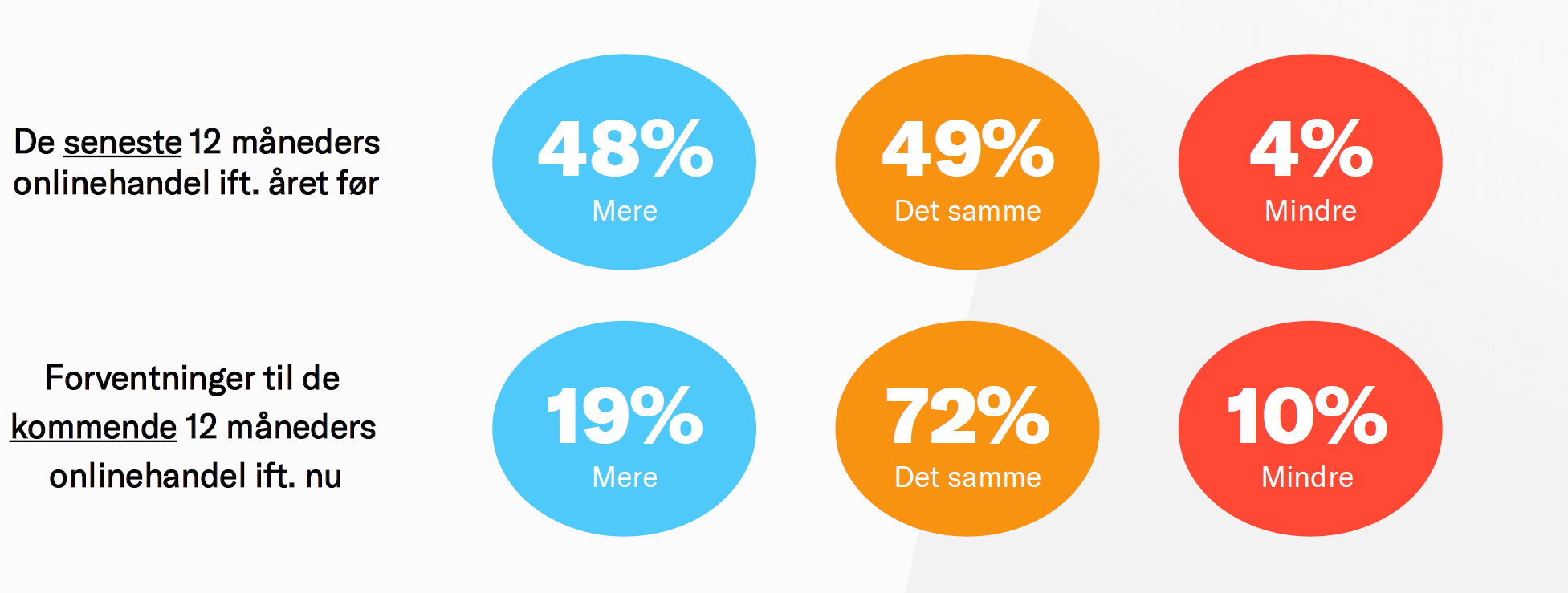 ”Forbruget på nettet har haft vokseværk i flere år, men der er ingen tvivl om, at coronakrisen, nedlukninger og udbetalte feriepenge har været benzin på bålet. Knap halvdelen af forbrugerne svarer da også, at de har handlet mere på nettet de seneste 12 måneder end tidligere,” forklarer Niels Ralund.