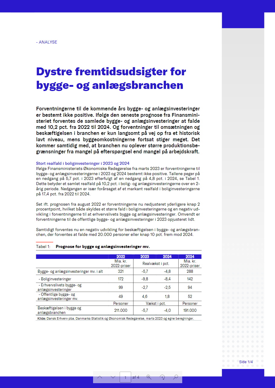 Forventningerne til de kommende års bygge-og anlægsinvesteringer er bestemt ikke positive. Ifølge den seneste prognose fra Finansministeriet forventes de ...