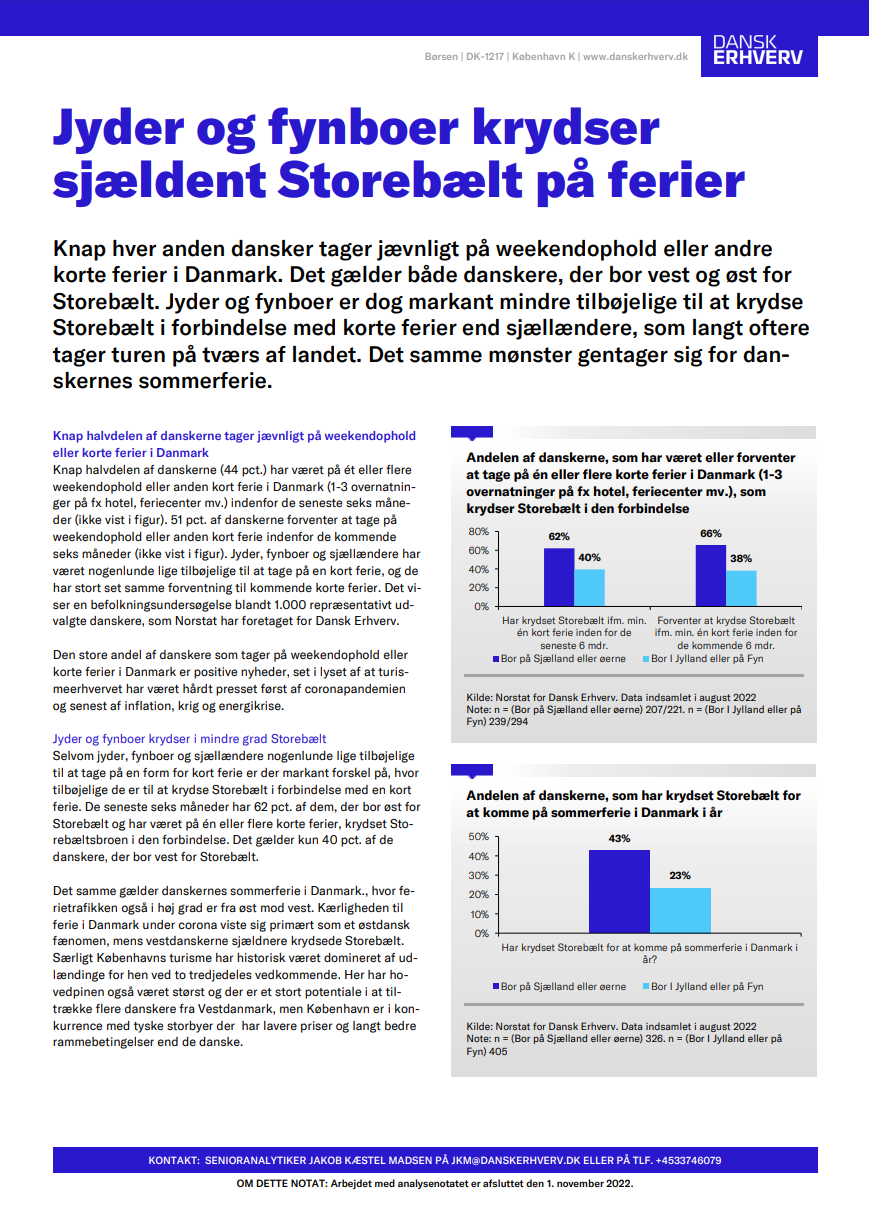 Knap hver anden dansker tager jævnligt på weekendophold eller andre korte ferier i Danmark. Det gælder både danskere, der bor vest og øst for Storebælt. Jy...