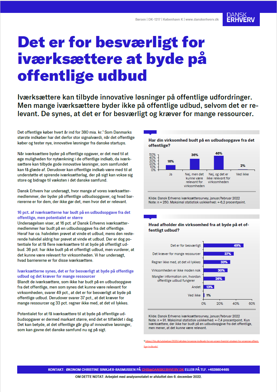 Iværksættere kan tilbyde innovative løsninger på offentlige udfordringer. Men mange iværksættere byder ikke på offentlige udbud, selvom det er relevant. De ...
