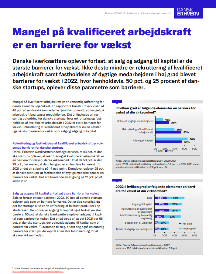 Danske iværksættere oplever fortsat, at salg og adgang til kapital er de største barrierer for vækst. Ikke desto mindre er rekruttering af kvalificeret arbe...