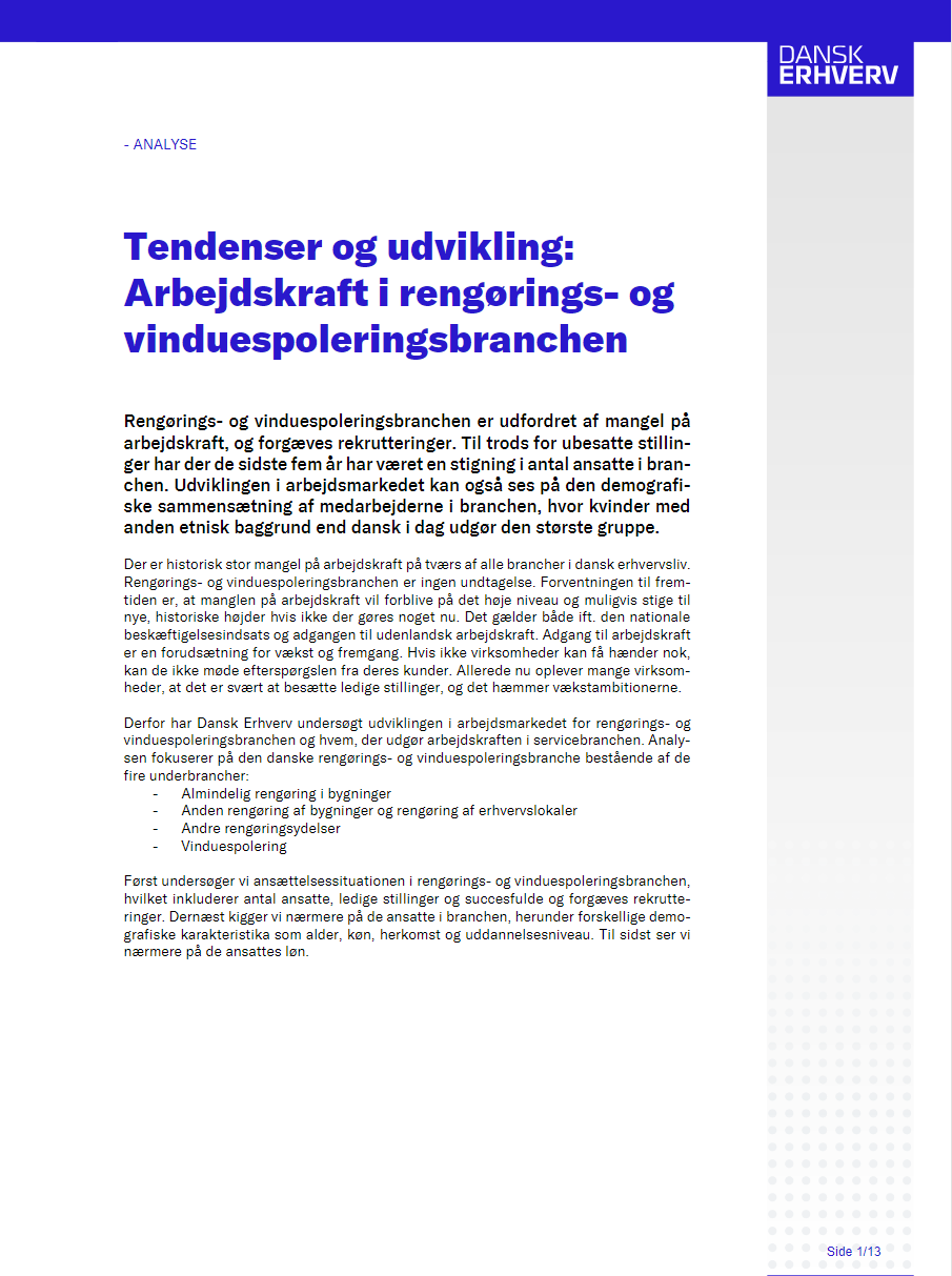 Rengørings- og vinduespoleringsbranchen er udfordret af mangel på arbejdskraft, og forgæves rekrutteringer. Til trods for ubesatte stillinger har der de sid...