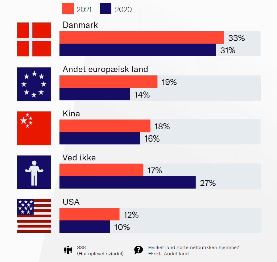 Der har været flere omtaler af forbrugere, der er blevet svindlet på kinesiske sider, og ifølge analysen bliver hver femte svindeltilfælde da også begået på kinesiske sider.