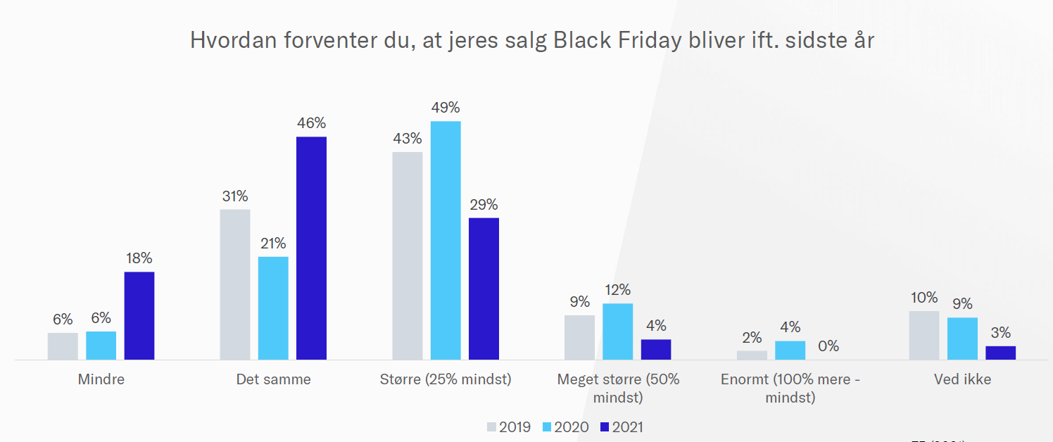 Niels Ralund, e-handelsdirektør i Dansk Erhverv, vurderer, at netbutikkernes mere konservative forventninger skyldes, at Danmark sidste år var ramt af corona-restriktioner, som fik flere forbrugere til at søge mod nettet. Samtidig blev der udbetalt feriepenge lige op til Black Week, og det fik salget til at stige voldsomt