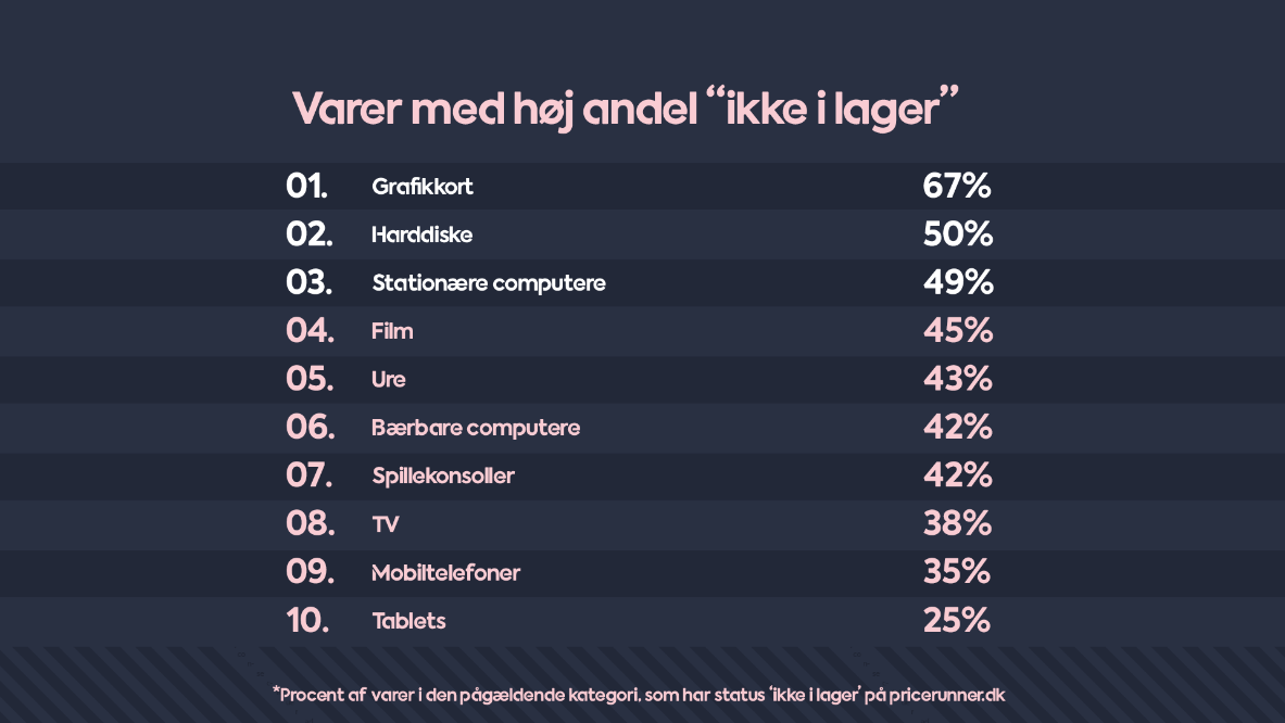 Den vurdering deles af Pricerunner. Prissammenligningstjenestens tal, der dækker 2,3 mio. varer, viser, at især elektronikbranchen må spejde længselsfuldt efter visse varer, men ellers er butikkerne godt forberedte inden Black Friday og julesalget.