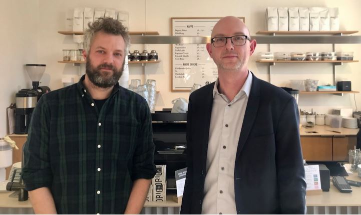 Jonas Skovsted-Overgaard, adm. direktør i Original Coffee, og Henrik Lundgaard Sedenmark, chefkonsulent hos Dansk Erhverv. Fotograf: Karen Damkjær Hansen.