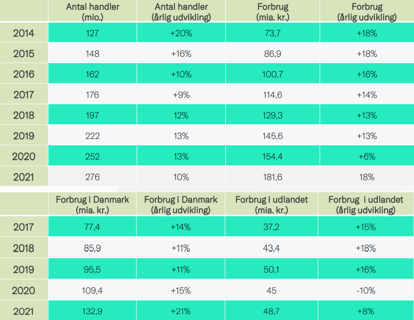 E-handelsanalysen 2021 fra Dansk Erhverv viser, at danskerne sidste år brugte næsten 182 mia. kr. på e-handel. Den nye rekord glæder
