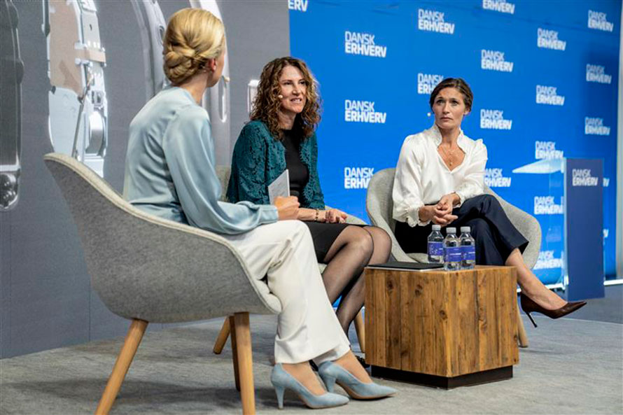 Formand for Dansk Erhverv, Jens Mathiesen, CEO i GN Hearing, Gitte Aabo, og direktør i Dansk Erhverv, Gitte Lillelund Bech.