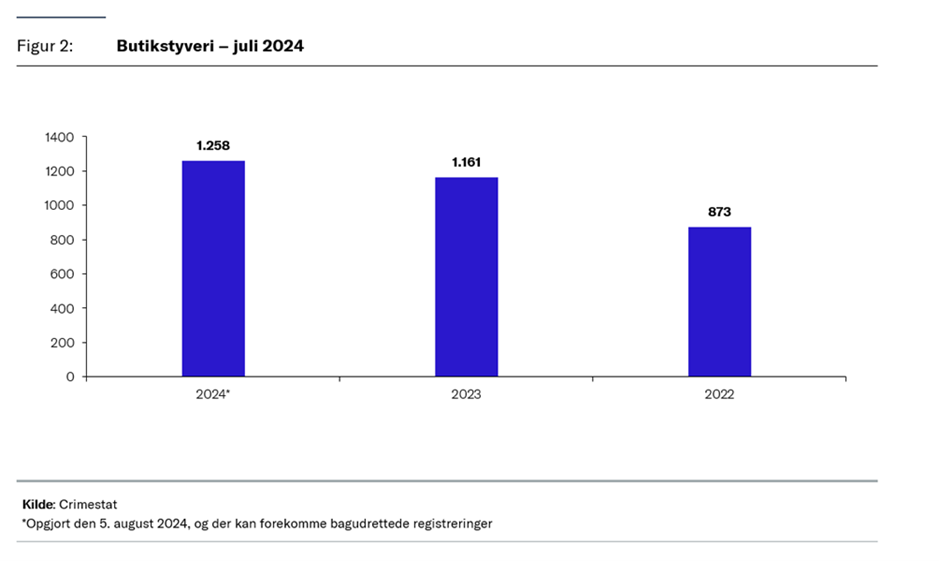 Figur 1: Butikstyveri, røveri og indbrud i juli 2024
