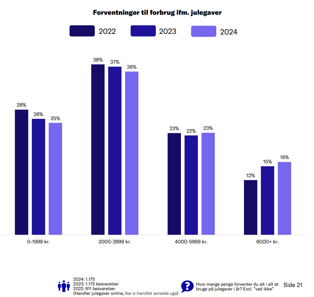 Niels Ralund glæder sig særligt over, at onlinekundernes budgetter til julegaver har haft vokseværk. Andelen, der forventer at bruge mere end 6000 kr. på julegaver, er steget fra 12 procent i 2022 til 16 procent i 2024. Samtidig er andelen, der forventer at bruge under 1999 kr., faldet fra 28 til 25 procent i samme periode.
