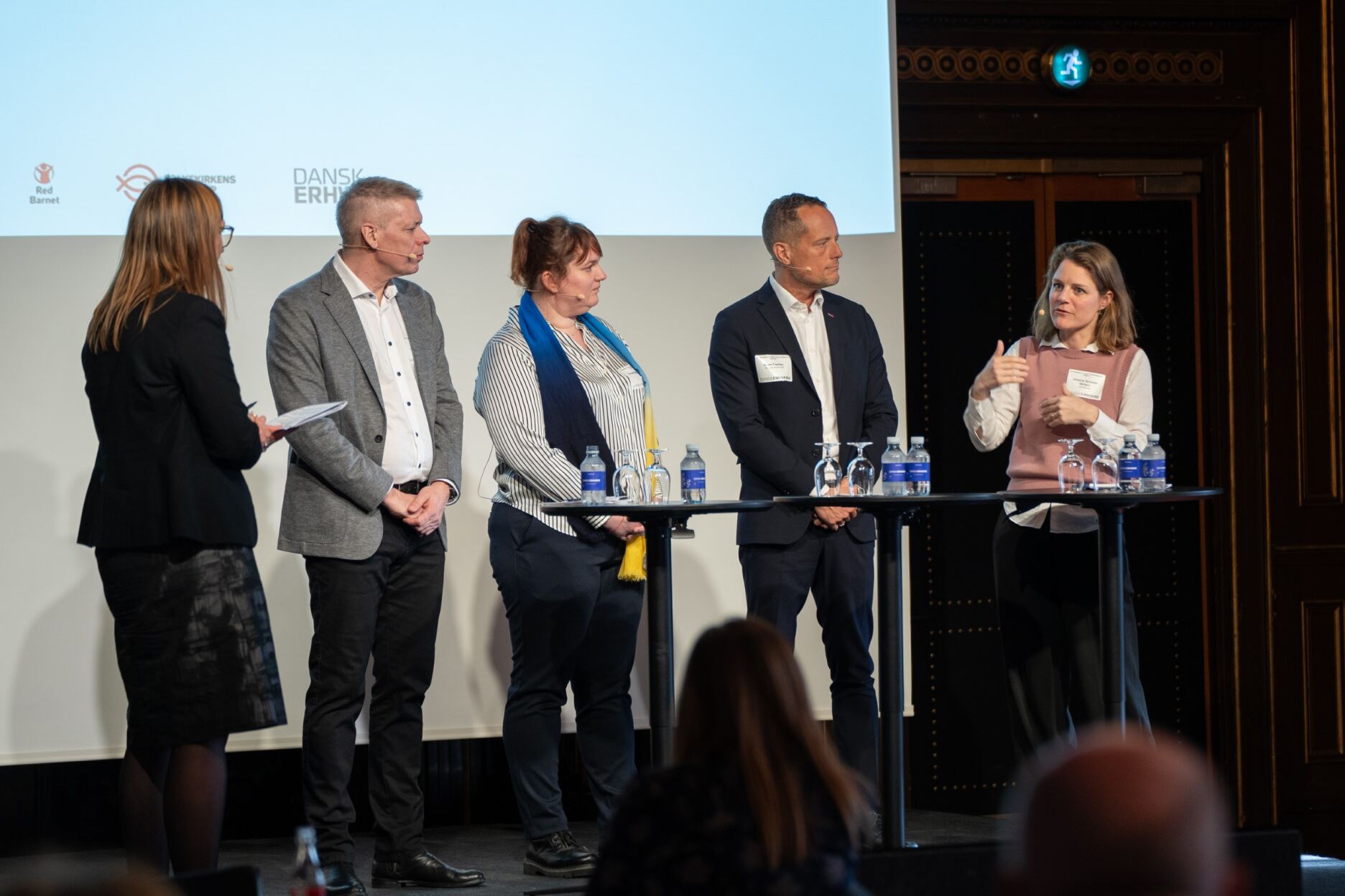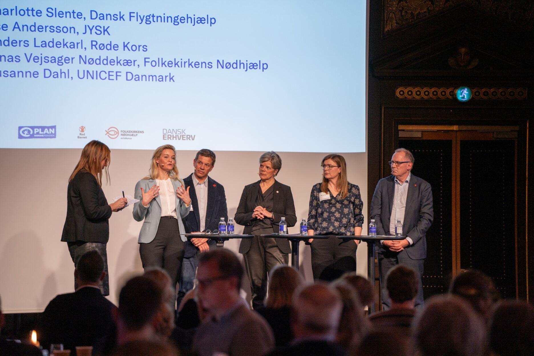 ”Vi har lært meget om, hvordan vi håndterer at have medarbejdere, som pludselig kan bryde sammen. Vi har blandt andet lært, at det ikke handler om at give dem plads. De har tværtimod brug for at blive omfavnet,” forklarede adm. direktør Søren Faerber, da han gik på scenen sammen med Johanne Schmidt-Nielsen fra Red Barnet, Kenneth Flex fra Dansk Flygtningehjælp og Oksana Medetska fra Bevar Ukraine.