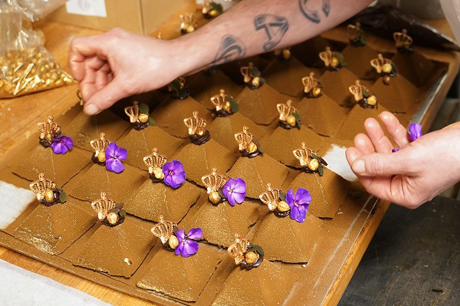 Og der er nok at se til hos det lille bageri, som i øjeblikket arbejder på højtryk for at færdiggøre de 1.200 tronskiftekager, der forventes langet over disken denne weekend. Til sammenligning plejer produktionen for en almindelig weekend at byde på 100 kager.