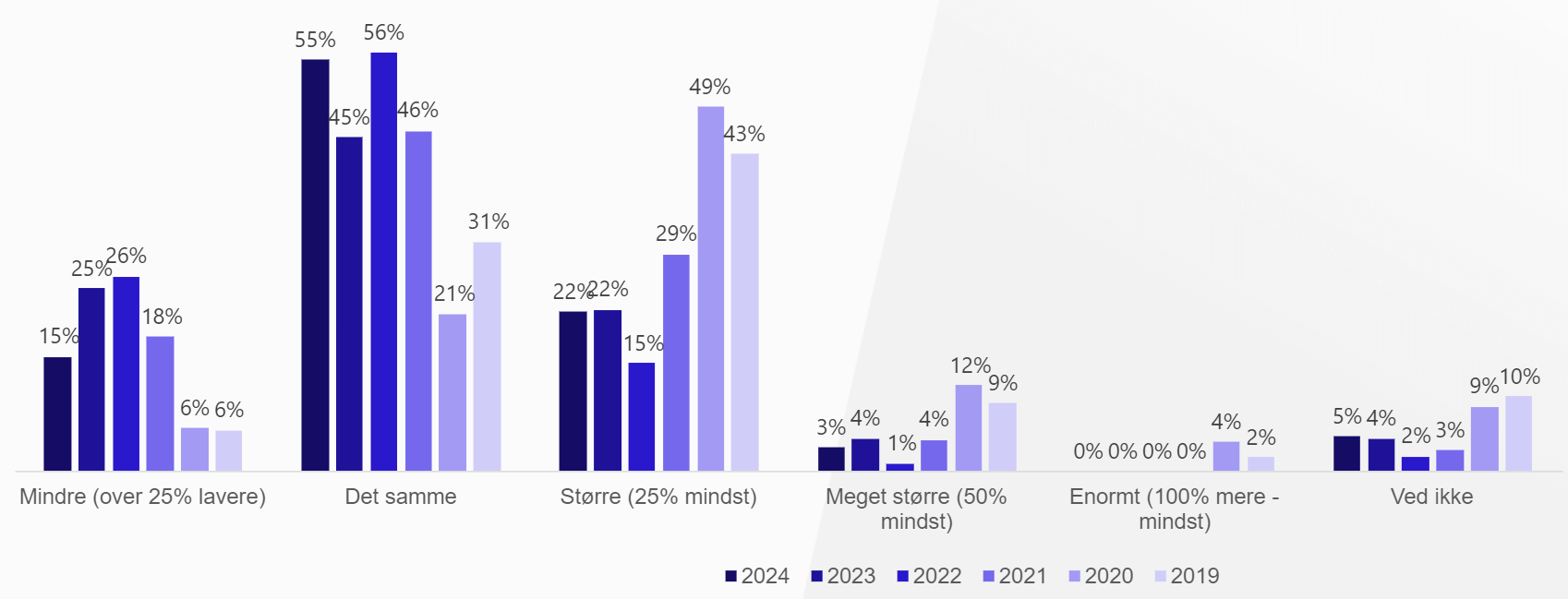 Hver fjerde butik forventer, at salget bliver mindst 25 procent større, mens 55 procent forventer, at det bliver det samme.