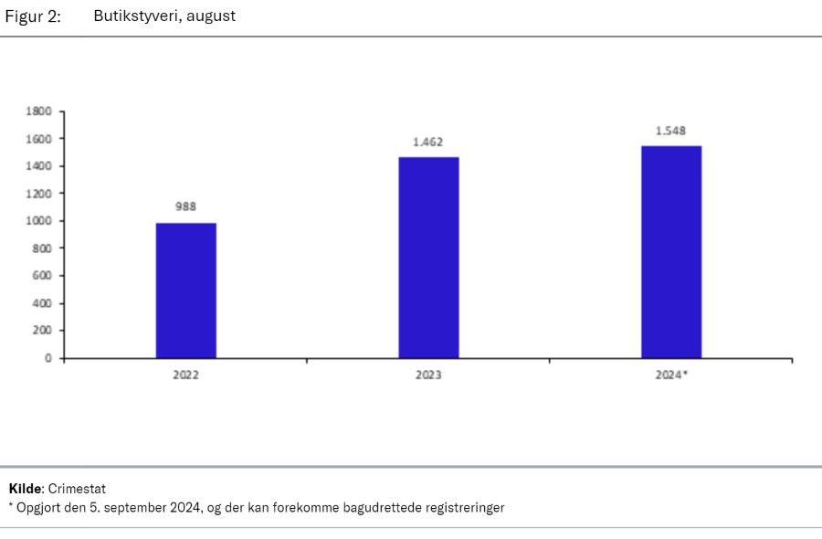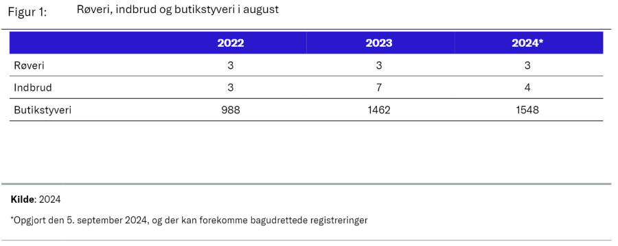 Crimestat kan nu præsentere data for butikstyverier, røverier og indbrud for august 2024; bekymrende mange registreringer.