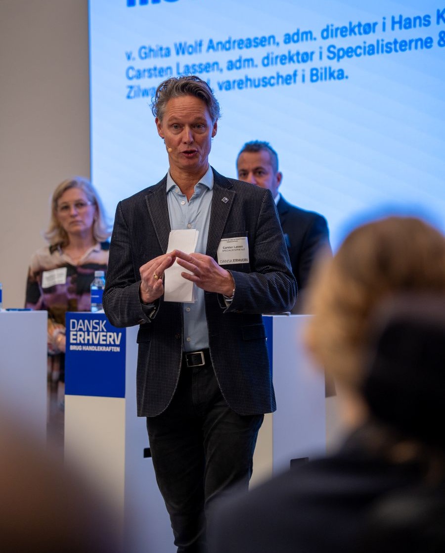 Tre stærke virksomhedscases gjorde inklusionen konkret. Zilwan Rashid, varehuschef i Bilka, viste, hvordan Salling Group arbejder med specialiserede indsatser, der giver medarbejdere med særlige behov trivsel, tryghed og lyst til at gå på arbejde. Samtidig pegede Ghita Wolf Andreasen, adm. direktør i Hans Knudsen Instituttet, på behovet for at arbejde systematisk med opgaven og få lederens værktøjskasse i brug. Carsten Lassen, adm. direktør i Specialisterne, udfordrede arbejdsmarkedets one size fits all-tilgang og fremhævede behovet for løsninger, der tager udgangspunkt i den enkelte medarbejder.