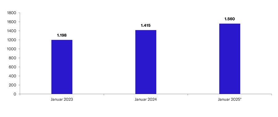 I januar 2025 er der registreret 1.560 butikstyverier, hvilket igen bekræfter Dansk Erhvervs bekymring og opråb for detailhandlens sikkerhed. Sidste år blev der registreret 1.415 butikstyverier i januar, hvilket svarer til en stigning på ca. 10 pct.