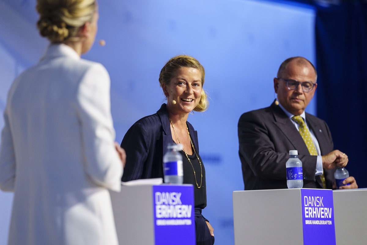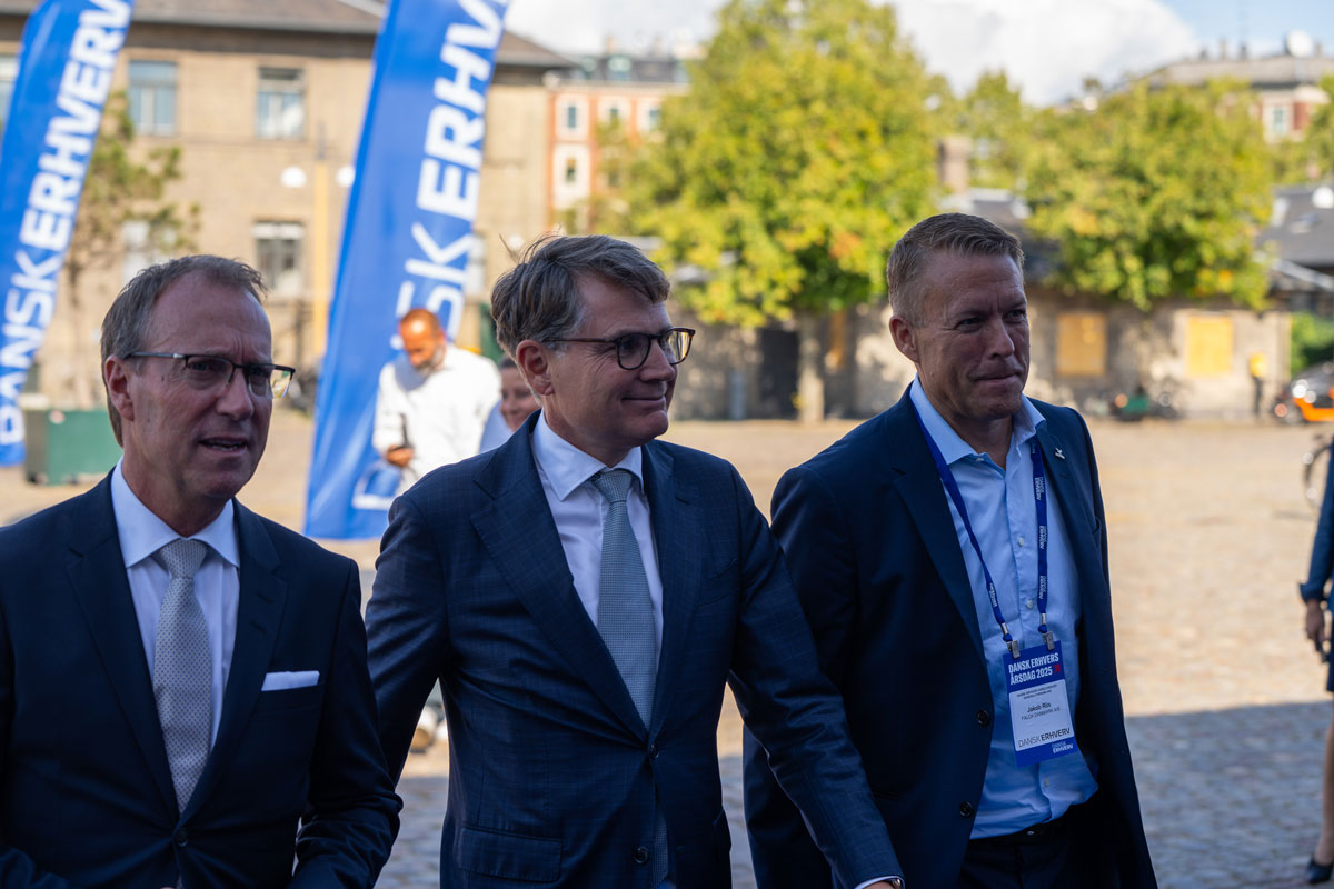 Brian Mikkelsen, adm. direktør i Dansk Erhverv, følges med Jakob Riis, CEO i Falck, og Jens Mathiesen, CEO i Scandic Hotels Group og formand for Dansk Erhverv.