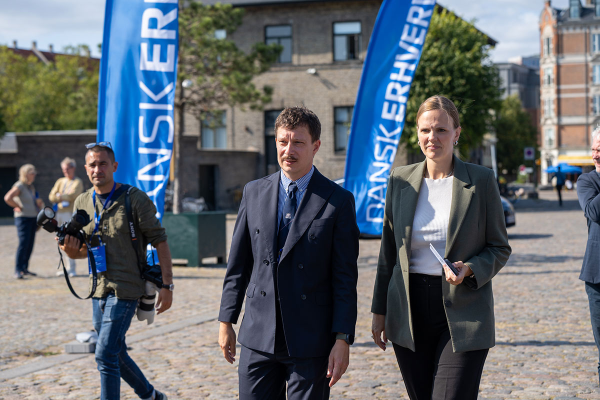Direktør i Dansk Erhverv, Morten Langager, tager imod økonominister Stephanie Lose.